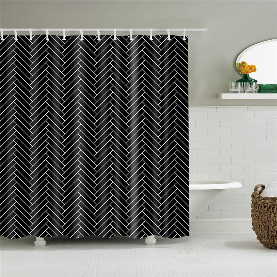 Черно-белая 3d-занавеска для душа с геометрическим рисунком, s зана...