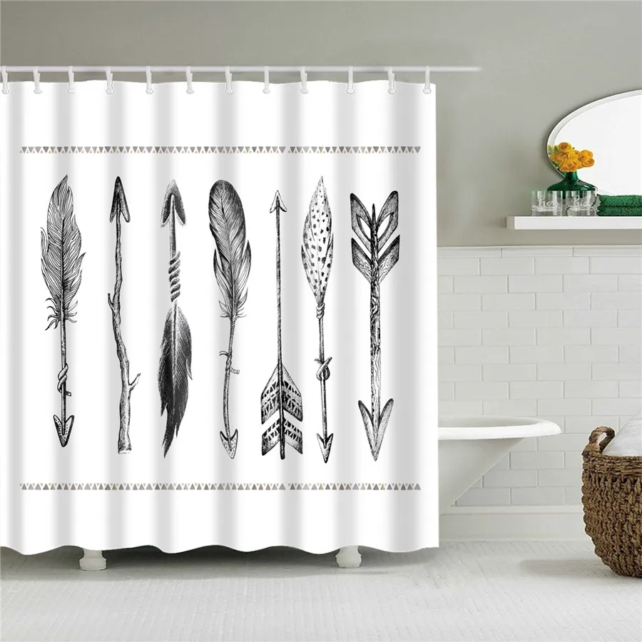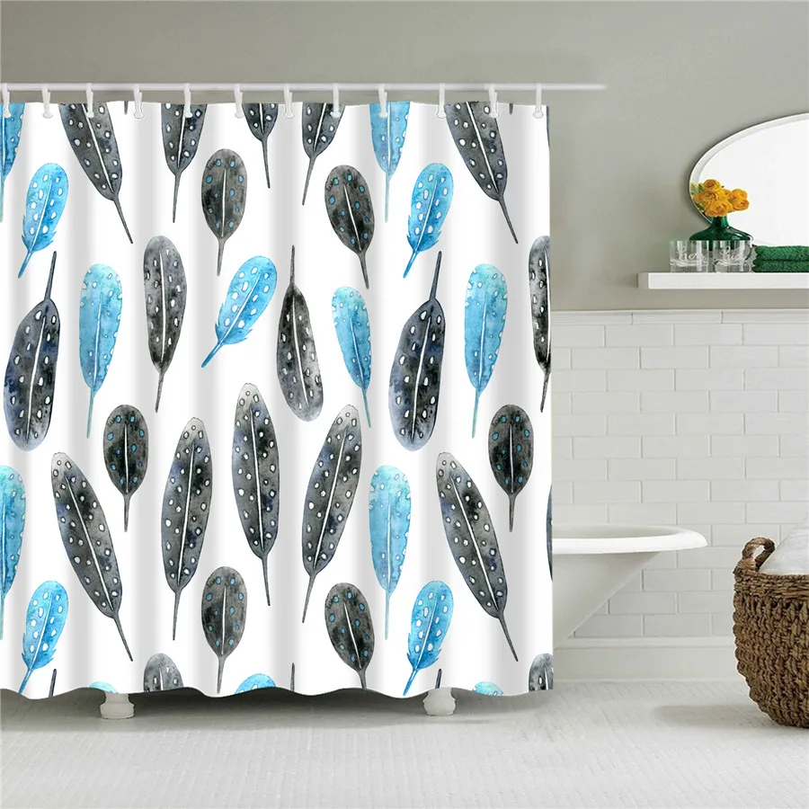 Занавеска с узором в виде перьев для ванной комнаты, занавеска для ...