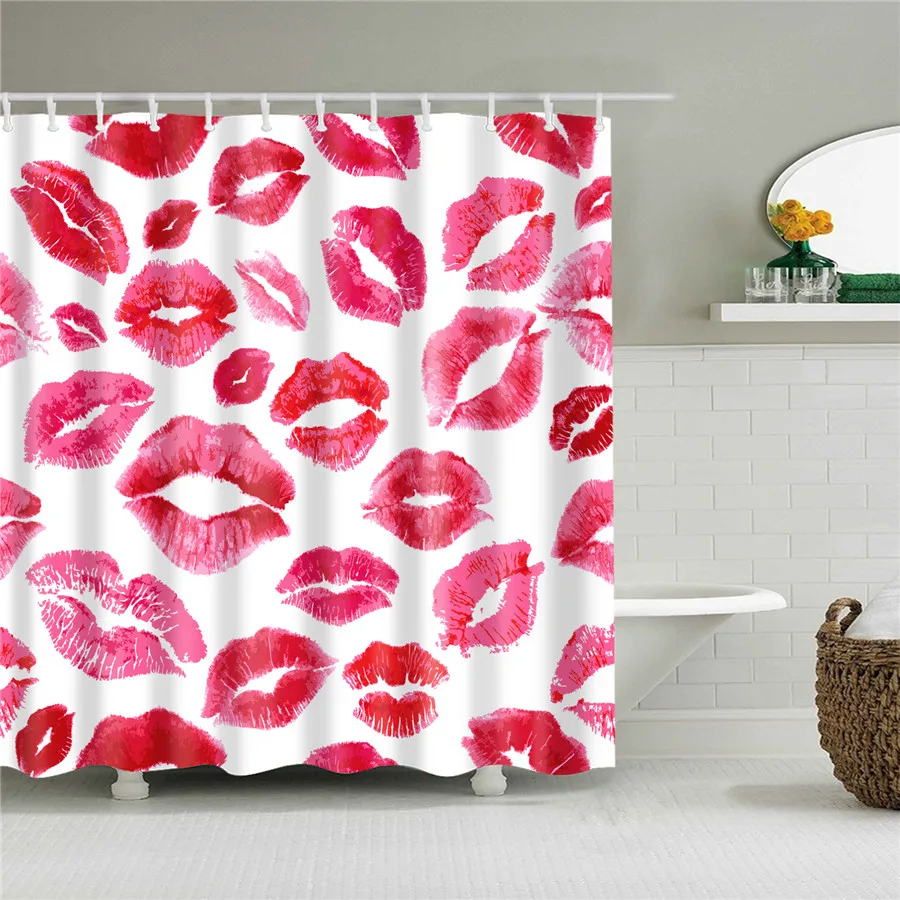 Занавеска для душа из полиэстера, водостойкая, с красными губами, с...