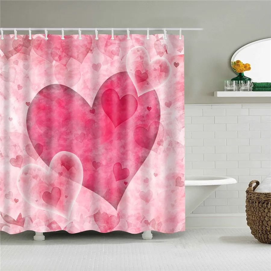 Занавеска для душа на День святого Валентина, яркая стеклянная зана...