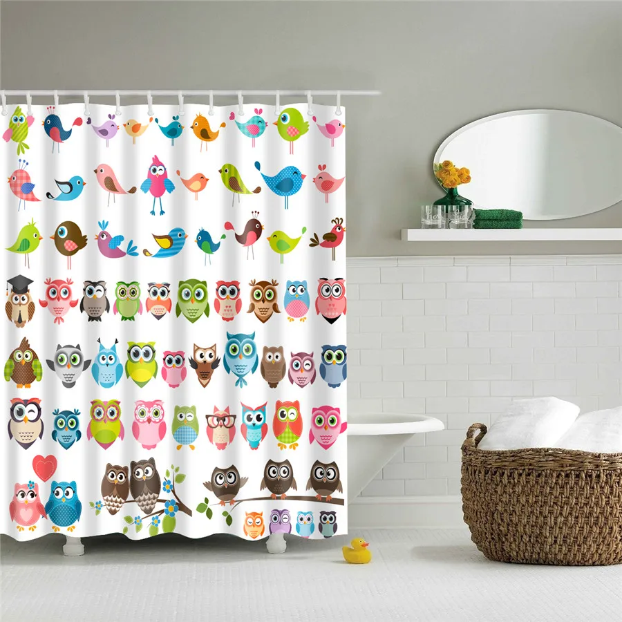 Шторы для душа с рисунком животных, СоваОрел, моющиеся яркие водоне...