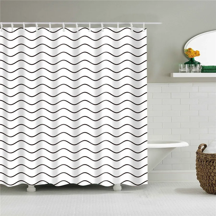 Простая занавеска для душа в черно-белую полоску, волнистый геометр...