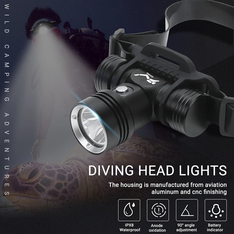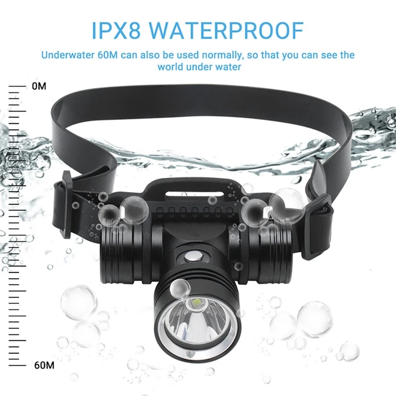 Светодиодный фонарик для дайвинга L2, суперъяркий IPX8, высочайшая водонепроницаемость, фонарь 220 м, подводный белый светильник онарь