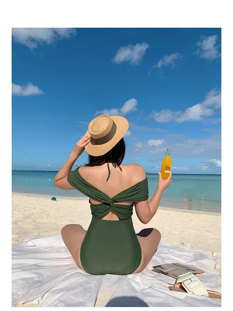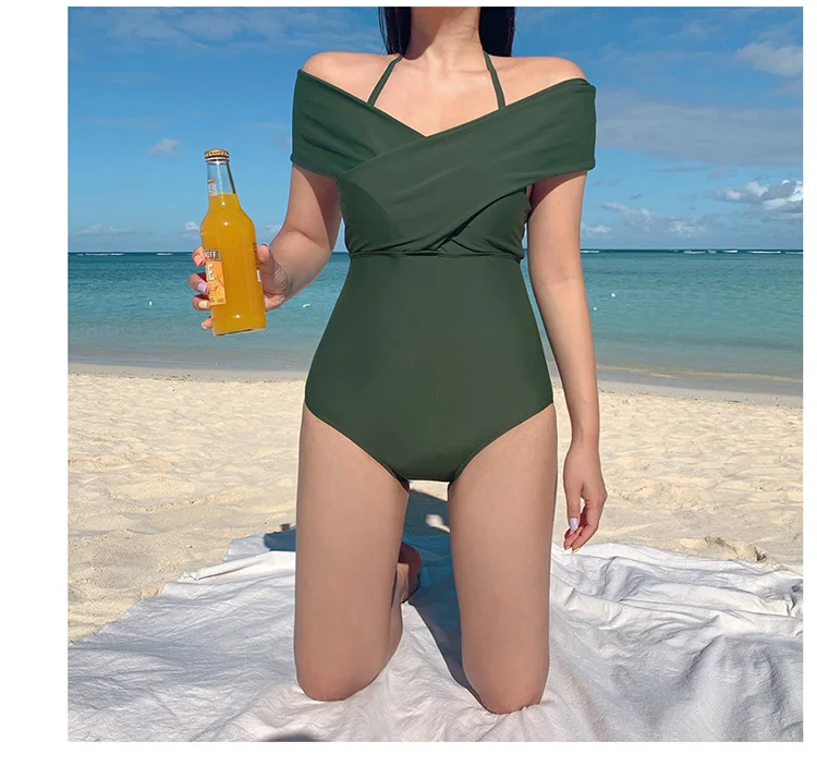 Женский слитный купальник, однотонный купальник с открытыми плечами и перекрестной спиной, сексуальная пляжная одежда, новинка 2020, купальный костюм, женский купальник
