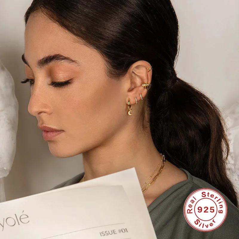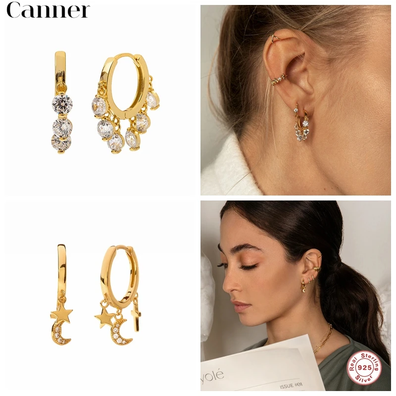 Женские серьги-кольца с цирконом AAAAA, роскошные серьги-висюльки с Луной и крестиком из стерлингового серебра с цирконием, ювелирные украшения для женщин, W4