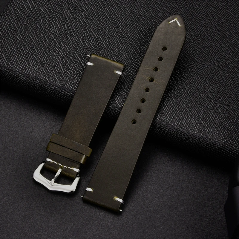 Ремешок для часов из натуральной воловьей кожи с масляным воском, 18202224 мм