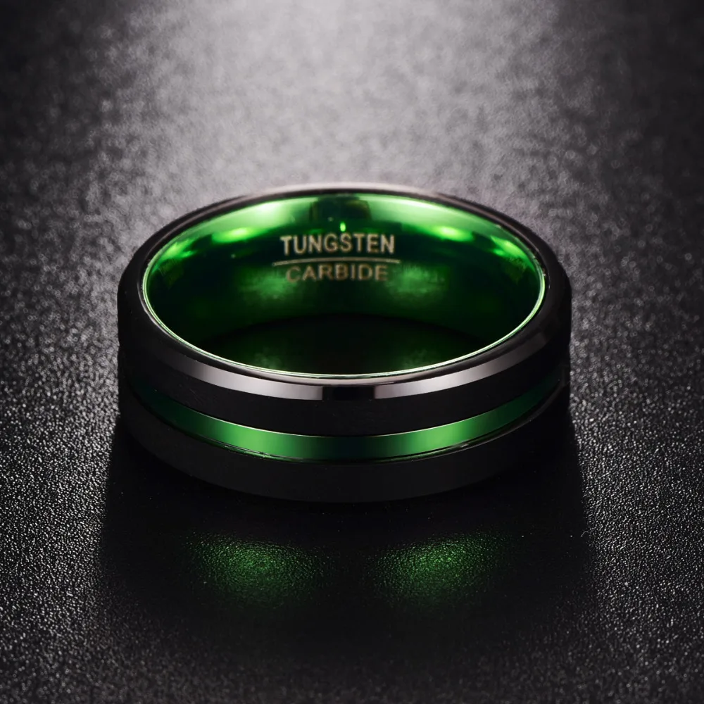 Кольцо из карбида вольфрама с зеленой линией, 8 мм