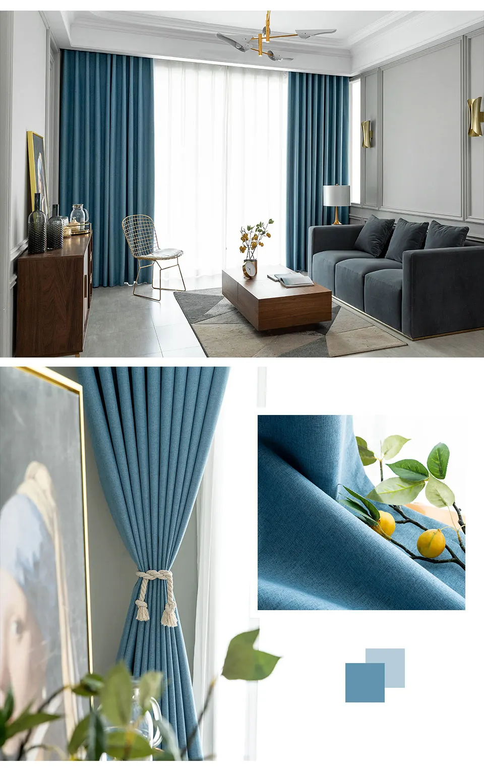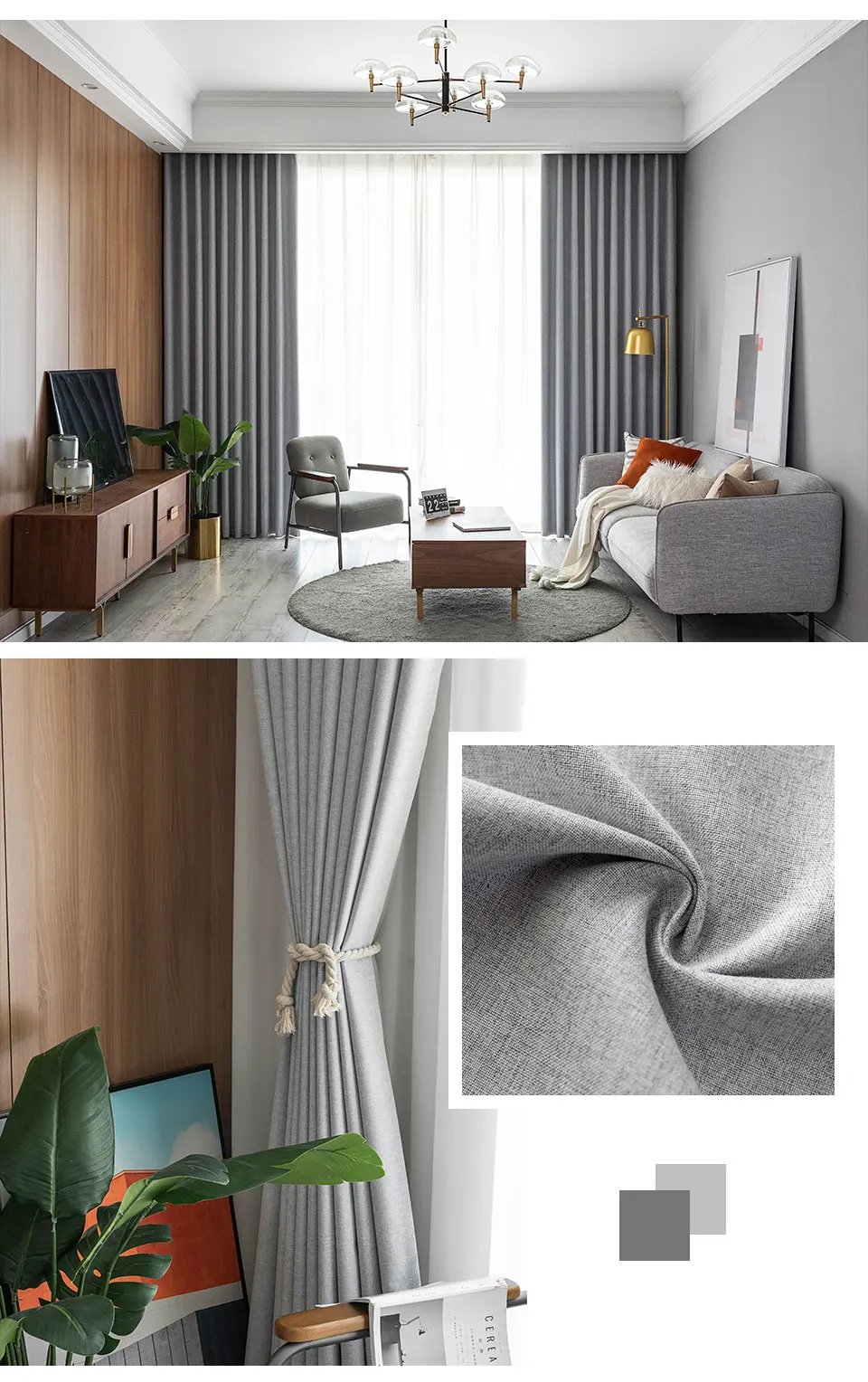 Шторы из искусственного льна 100%, затемняющие шторы для гостиной, ...