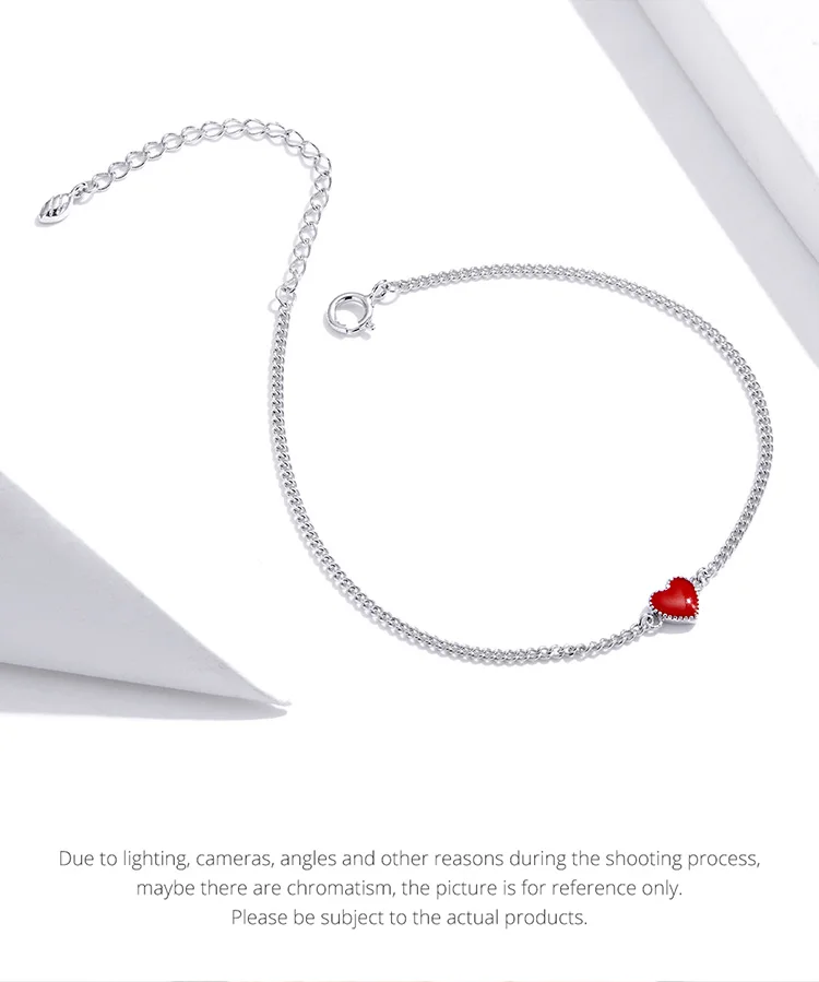 Браслет-цепочка женский из серебра 925 пробы с красной эмалью