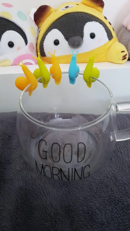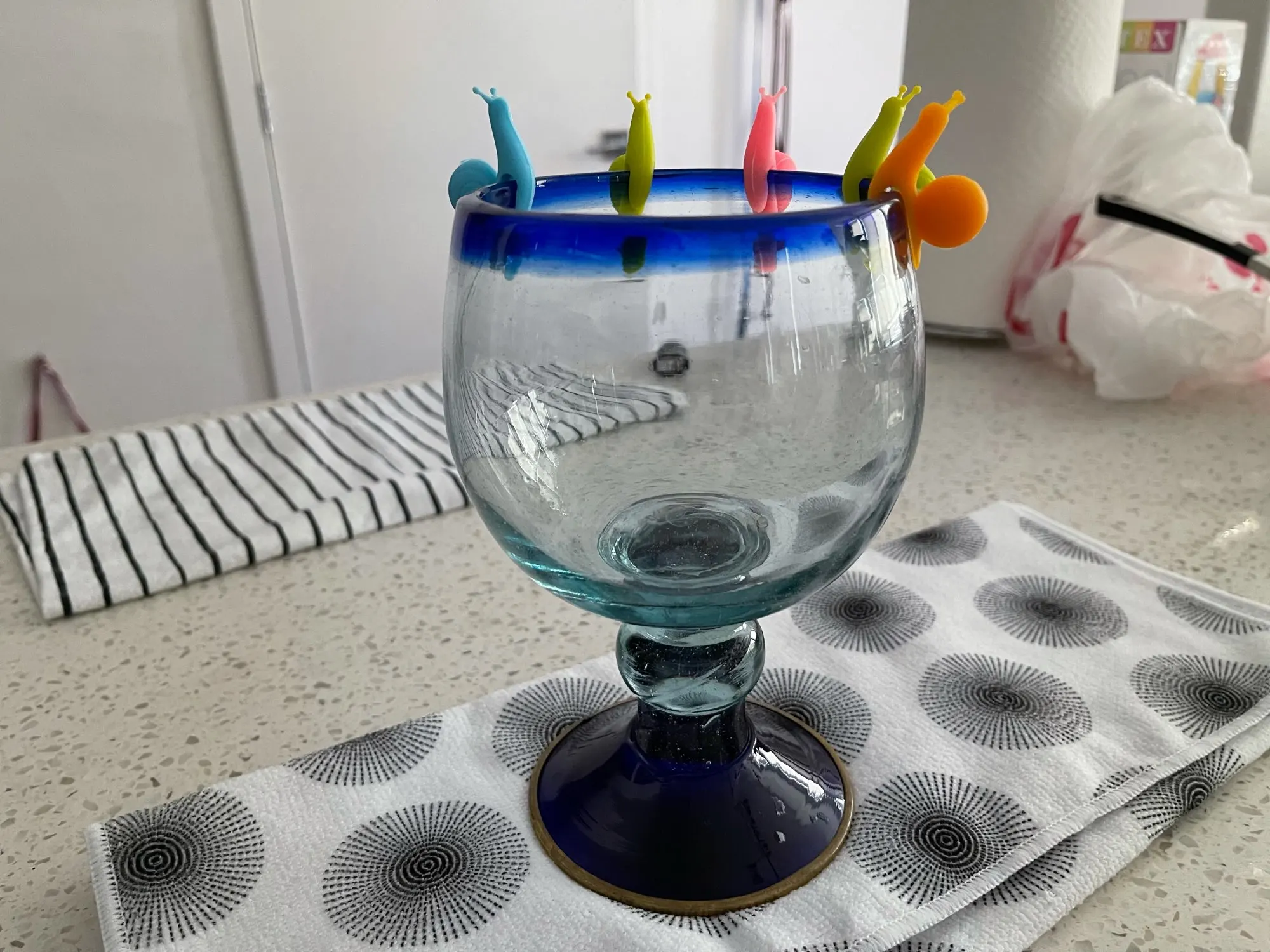 Товар пришёл довольно быстро, в течение месяца (до Алтайского края). Полностью соответствует описанию, прикольные улитки, на ощупь мягкие (резиновые), без запаха. На бокале держится надёжно. Продавца рекомендую.