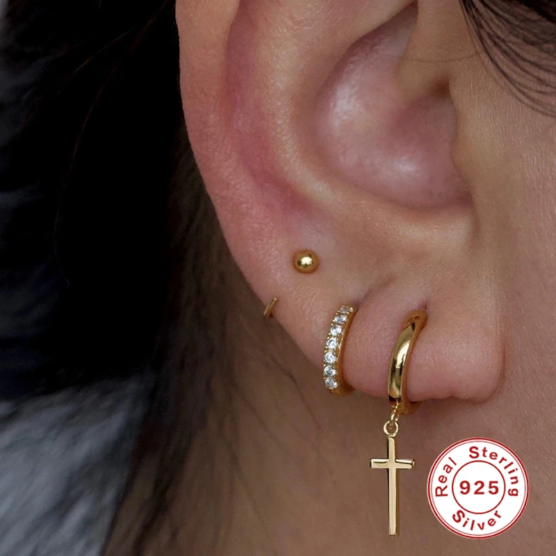 Серьги-кольца с крестом женские, из стерлингового серебра 925 пробы...