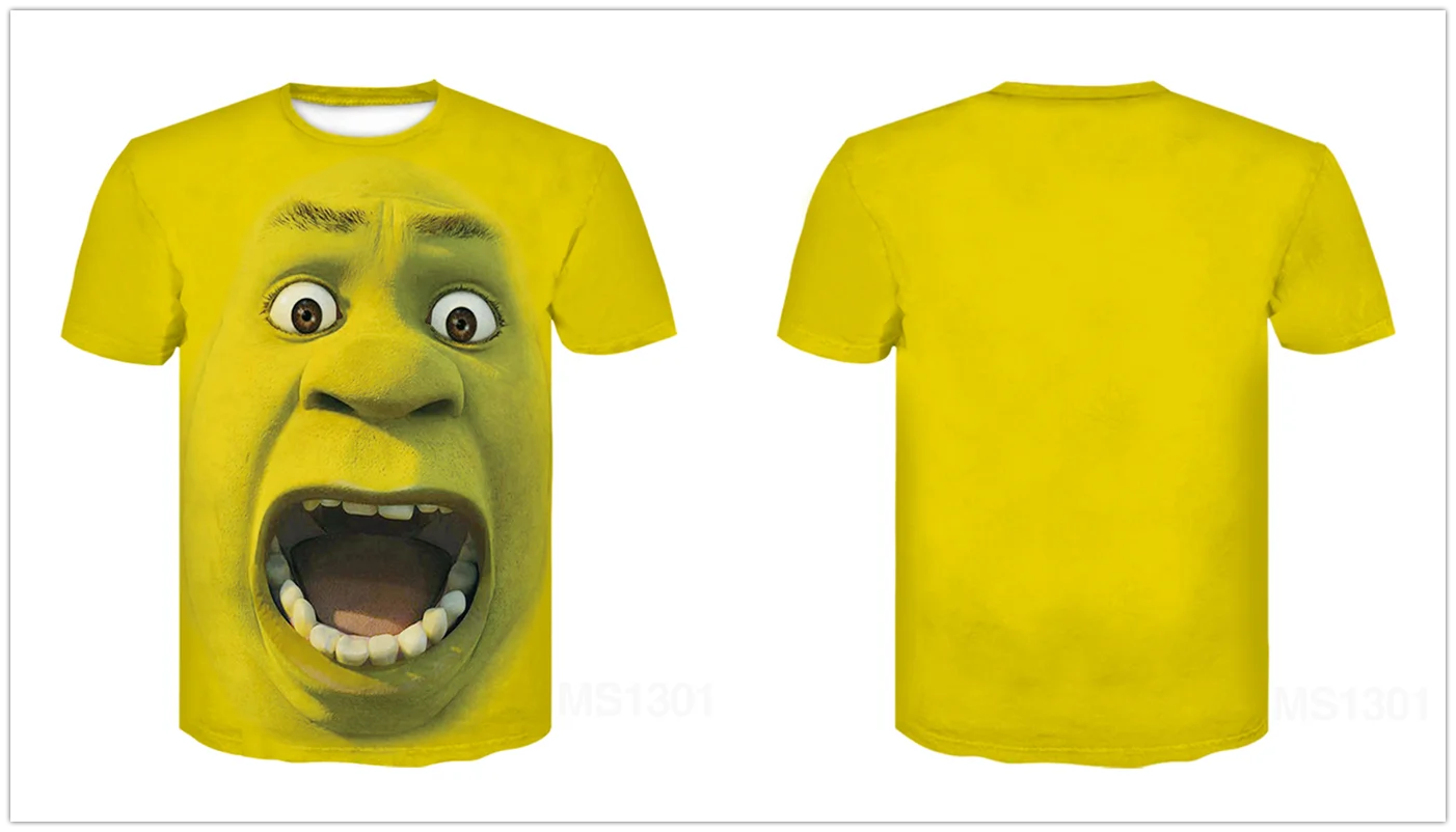 Новинка 2021, футболка с объемным принтом Шрека из аниме, модная му...