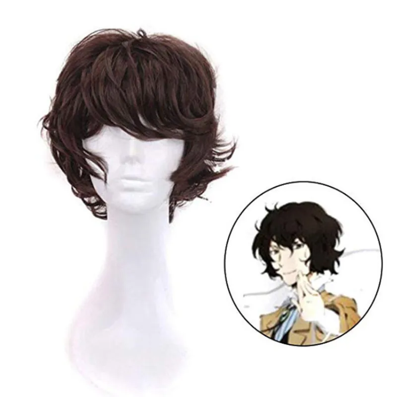 Парик термостойкий для косплея Осаму из аниме бродячие псы, Короткие вьющиеся волосы, для костюма, с шапочкой