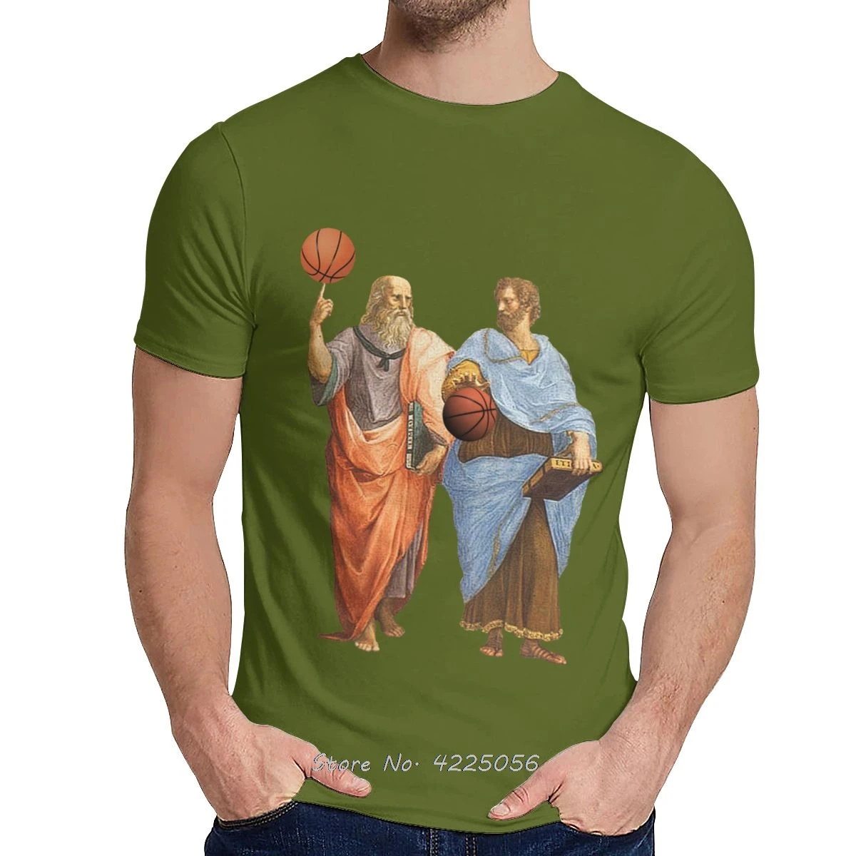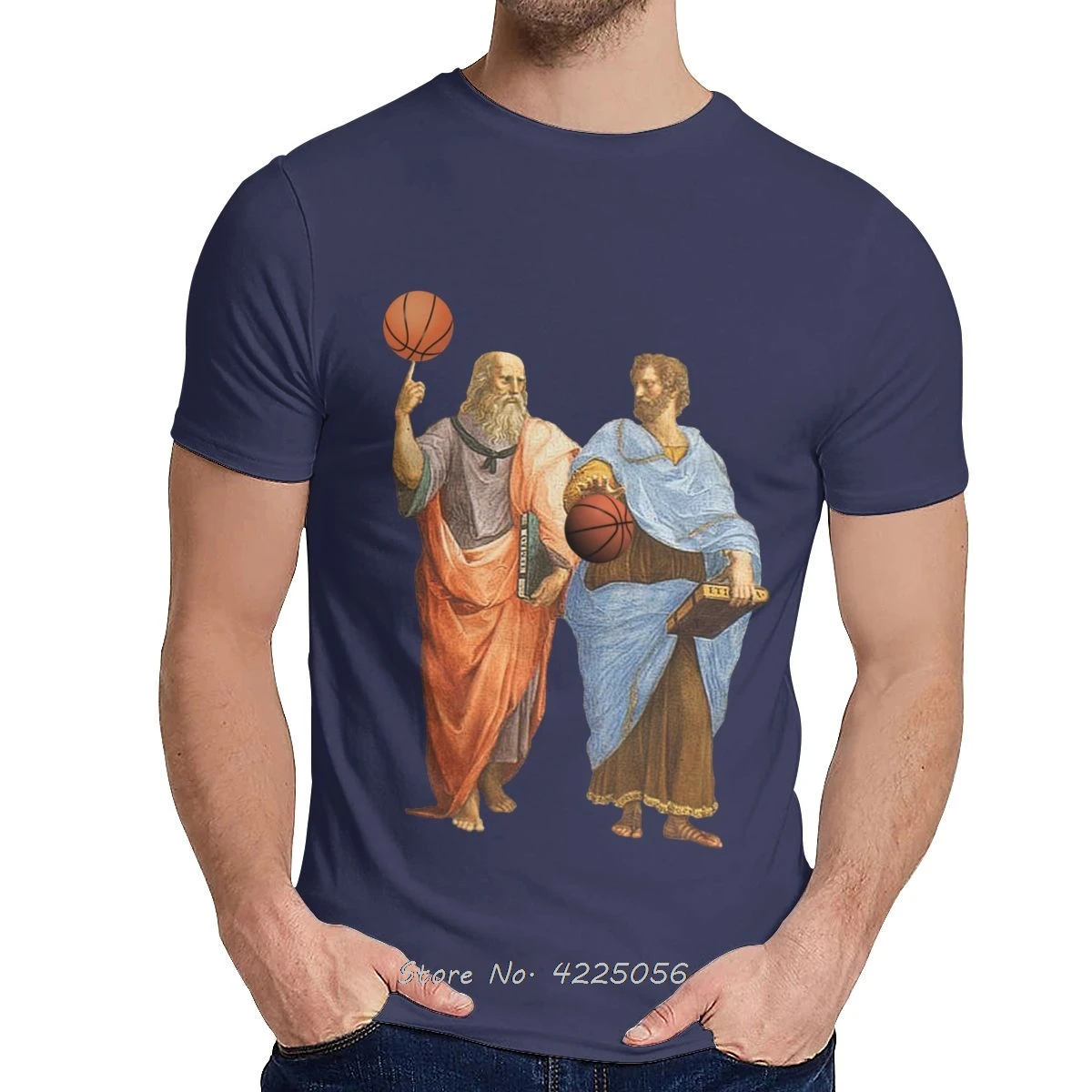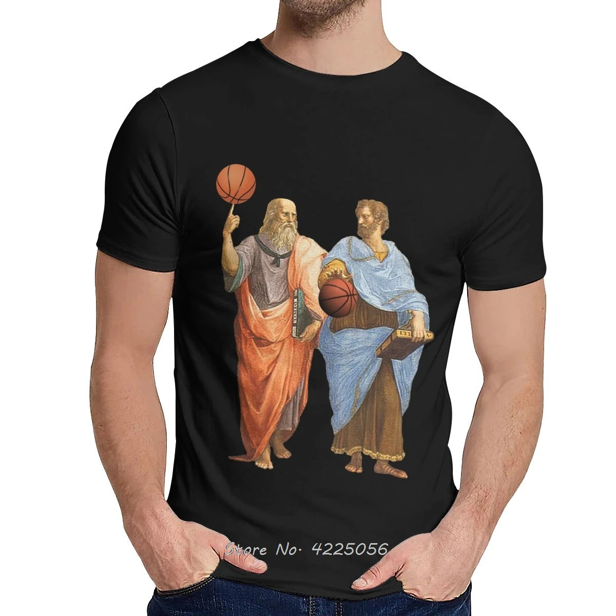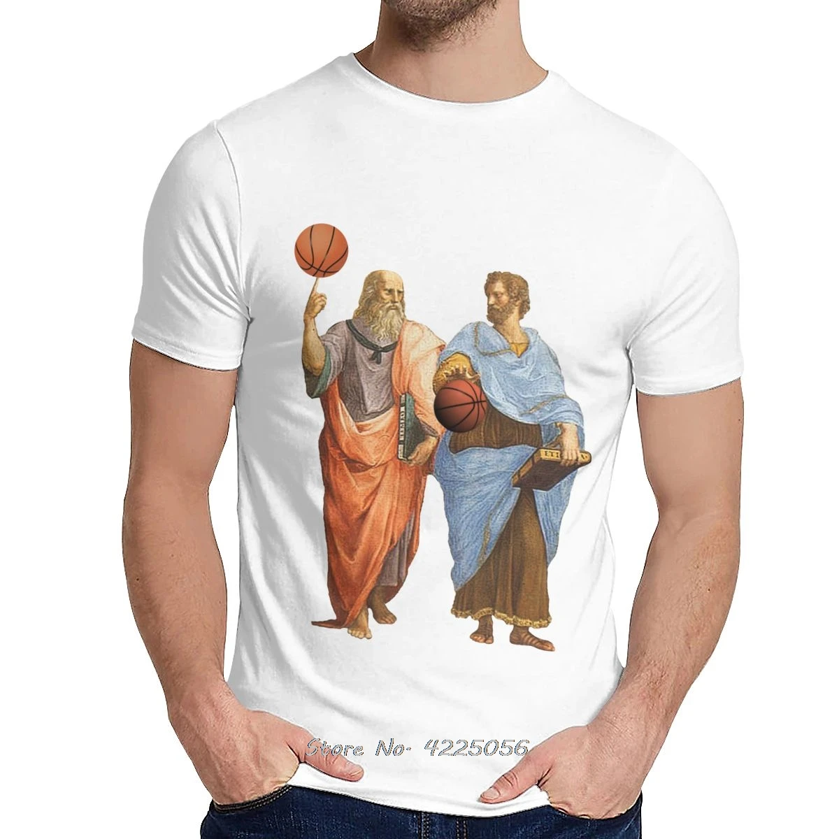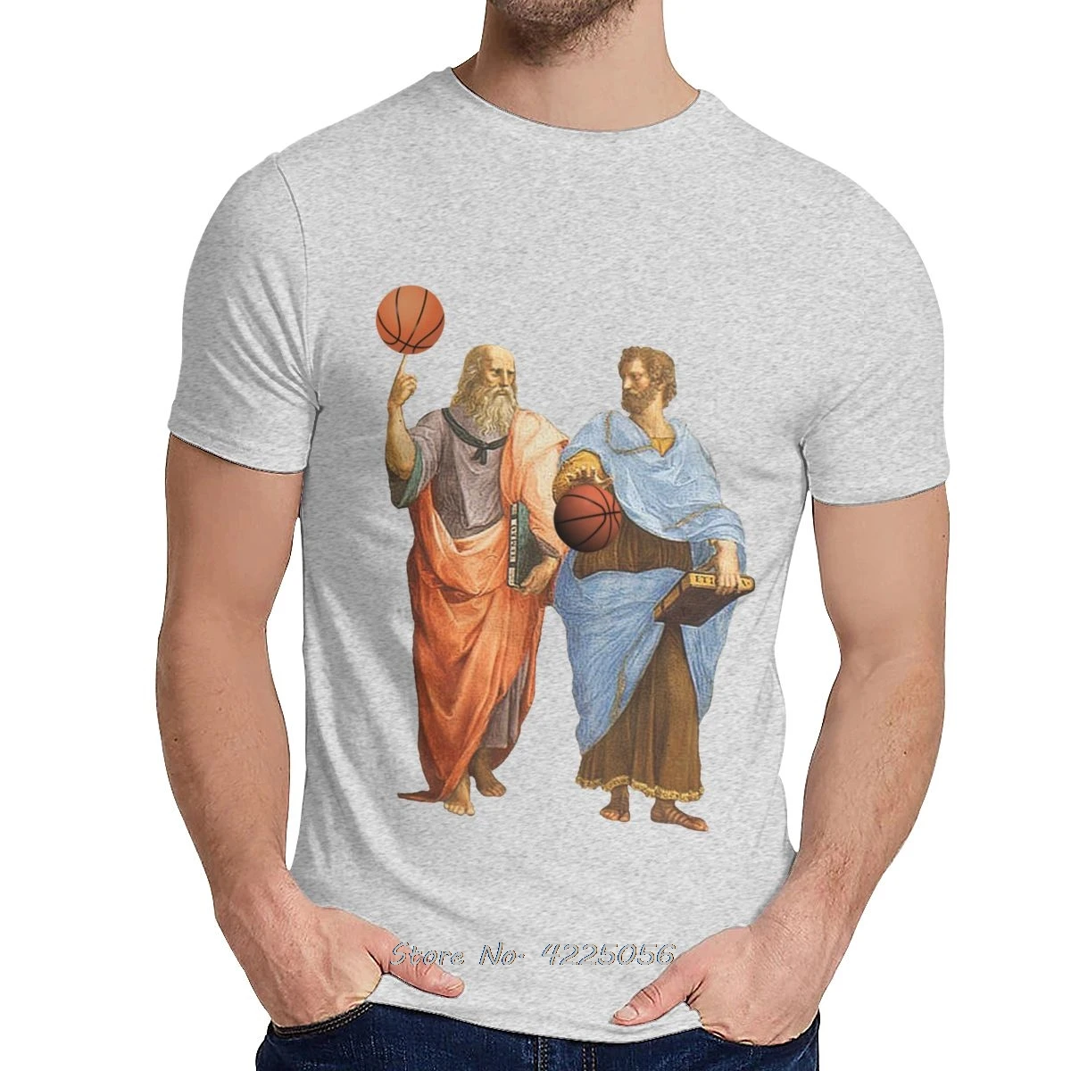 Мужская футболка Платон и Аристотель в эпическом баскетбольном матче, Приталенная футболка с графическим принтом с забавным мультяшным дизайном