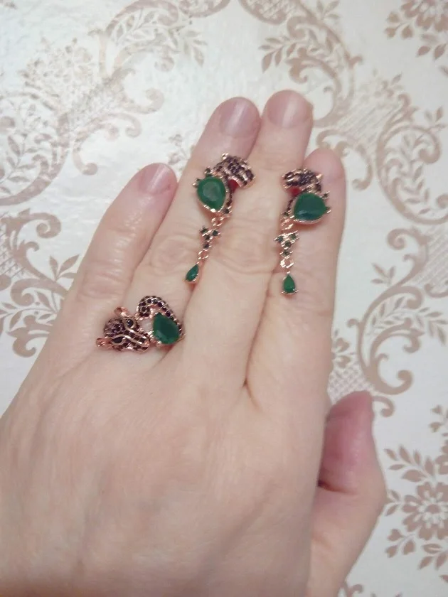 красивый набор, немного цвет ,,позолоты,, уходит в красноту и у второй сережки крепление очень ,очень,преочень слабое!!!!
