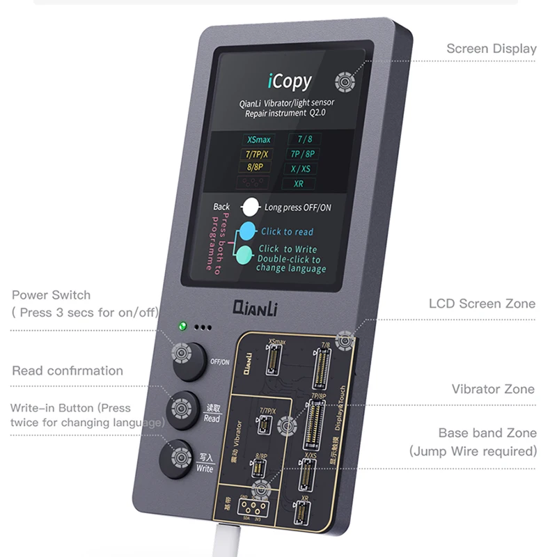 Оригинальный цветной ремонтный программатор Qianli iCopy Plus для iPhone 7 8P XR XSMAX XS 11, вибрирующийсенсорныйФоточувствительныйремонт аккумулятора