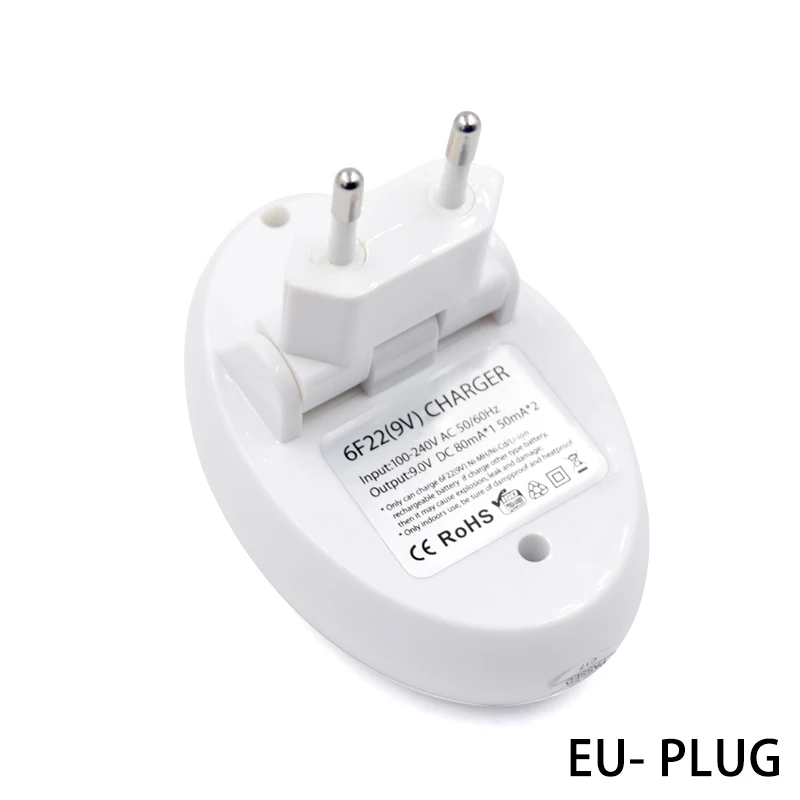 Вход: 100-240 В переменного тока Макс: 100 мА Выход: 9 В постоянного тока 90 мА Потребление энергии без нагрузки: 1 Вт макс. Максимальная потребляемая мощность при полной нагрузке: 5 Вт Частота аккумулятора: >90% Размер: 90 мм x 60 мм x 37,4 мм Вес: 46,6 г 1. Подходит для всех напряжений питания по всему миру. 2. Это зарядное устройство использует технологию управления MCU, обеспечивая постоянный ток и постоянную модель безопасности напряжения. 3. Зарядное устройство будет заряжать аккумулятор при подключении, а индикатор-светильник-синий. 4. Зарядка только для одного или двух шт. 9 В литиевый, Ni-MH, NI-CD батареи, Не заряжайте для других типов батарей.