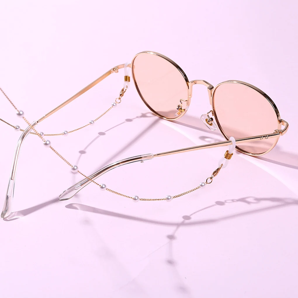 Цепочка для очков для чтения Женская, металлическая, с жемчужными бусинами