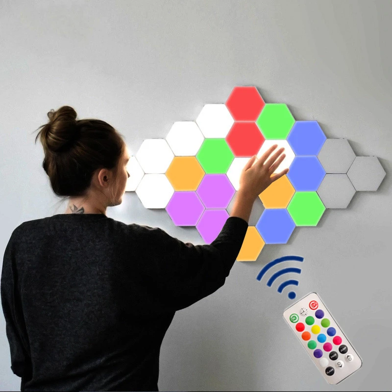 Настенный светильник квантовый шестиугольный светодиодный модульный сотовый пульт дистанционного управления Панель лампы для спальни сенсорный Helios магнитное настенное освещение