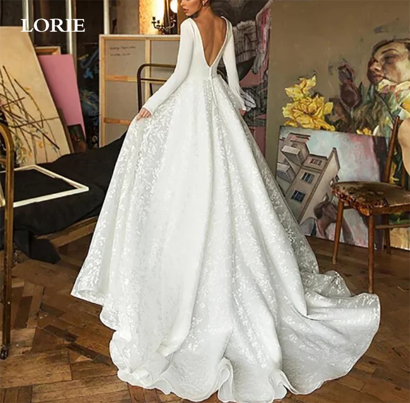 Кружевные свадебные платья LORIE в стиле бохо 2020, свадебные платья с длинным рукавом и V-образным вырезом, свадебные платья принцессы, мягкое атласное белое платье с открытой спиной