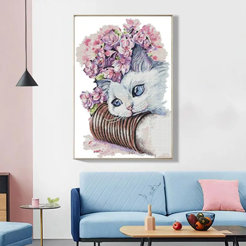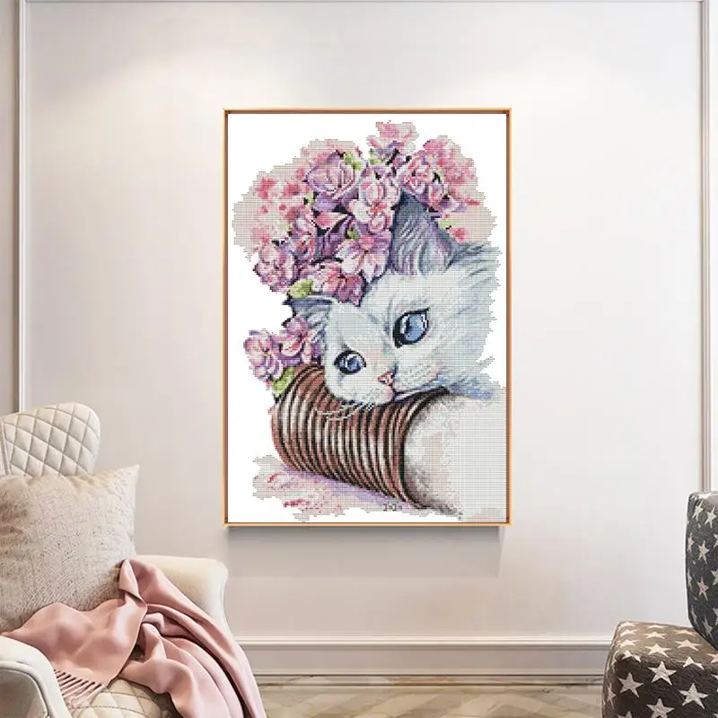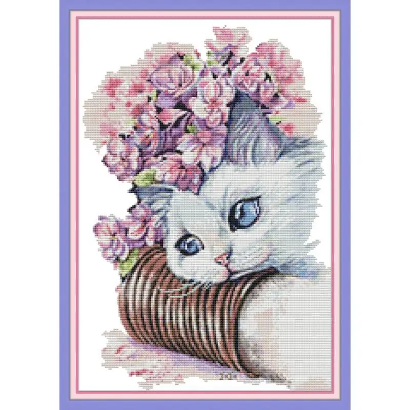Joy Sunday Набор для вышивки крестиком с изображением кота и цветов 11CT 14CT набор для рукоделия из ткани и холста Набор для вышивки украшения дома