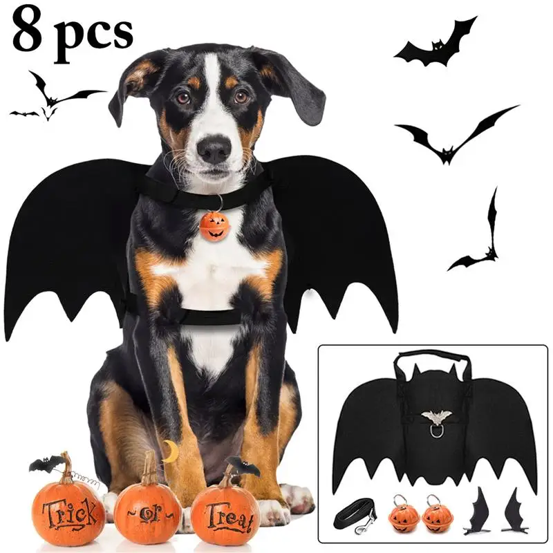 Милые крылья Летучая мышь с поводком, заколка для волос в виде тыквы, колокольчика для домашних животных, Костюмы собак, кошек, одежда для косплея на Хэллоуин, Забавное платье, аксессуары для домашних животных