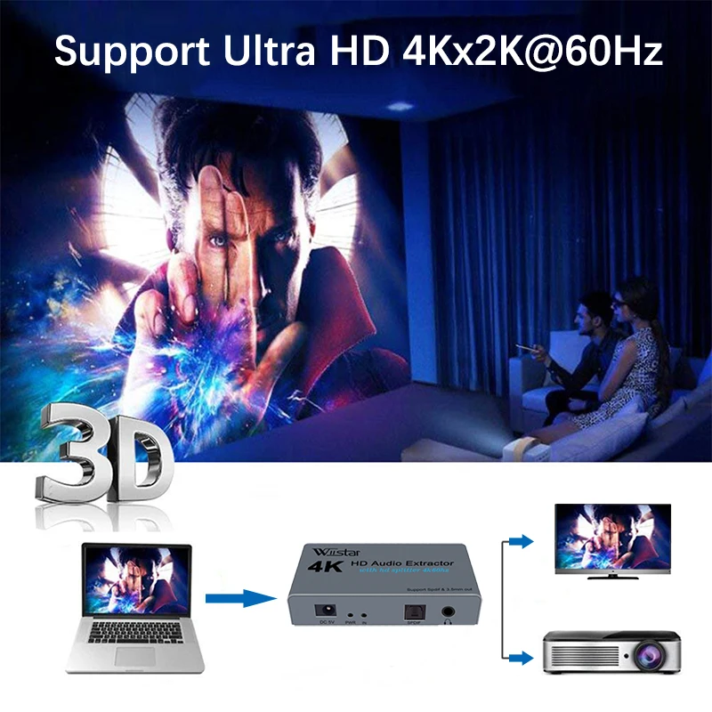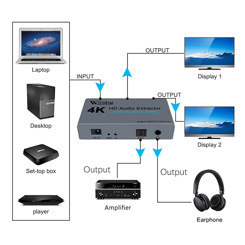 Wiistar HDMI аудио экстрактор сплиттер HDMI на 2 HDMI Spliiter 4K60Hz HDMI в HDMI Оптический SPDIF + 3,5 мм HDMI аудио сплиттер