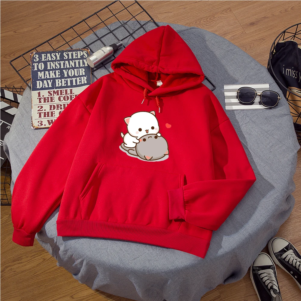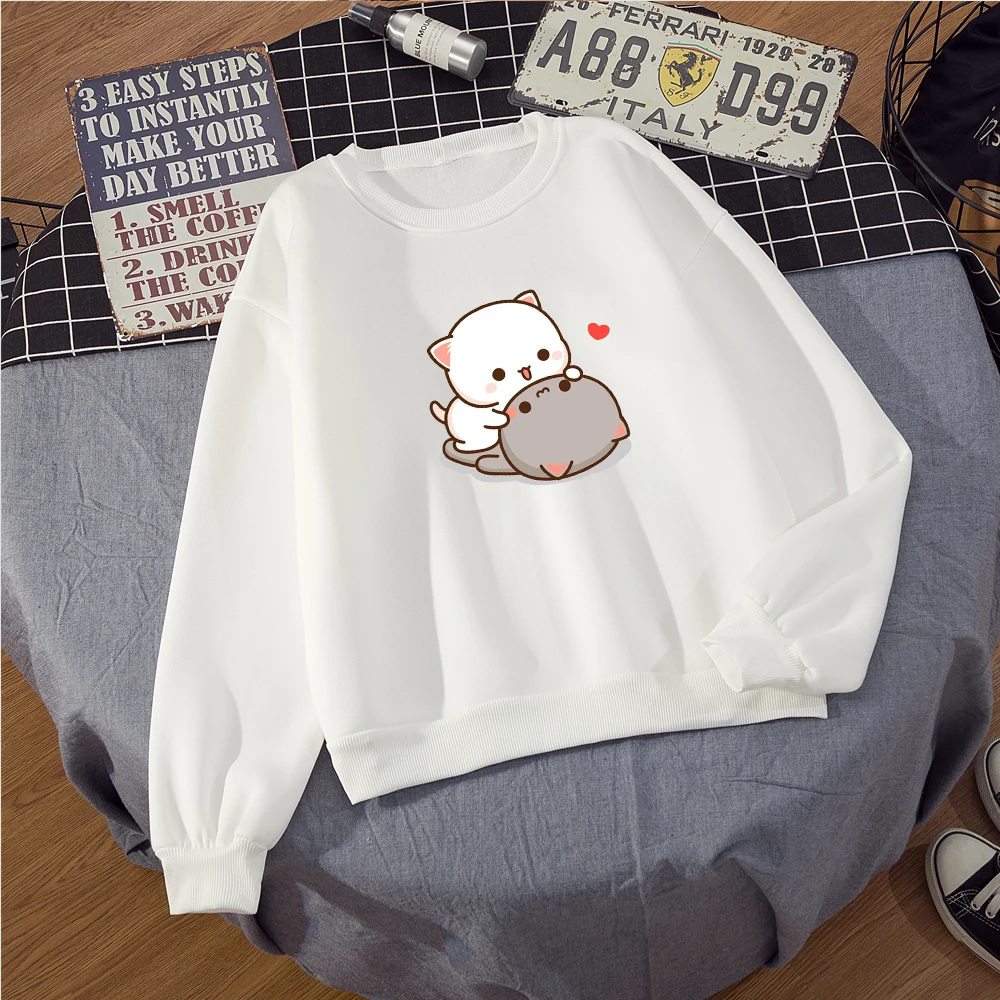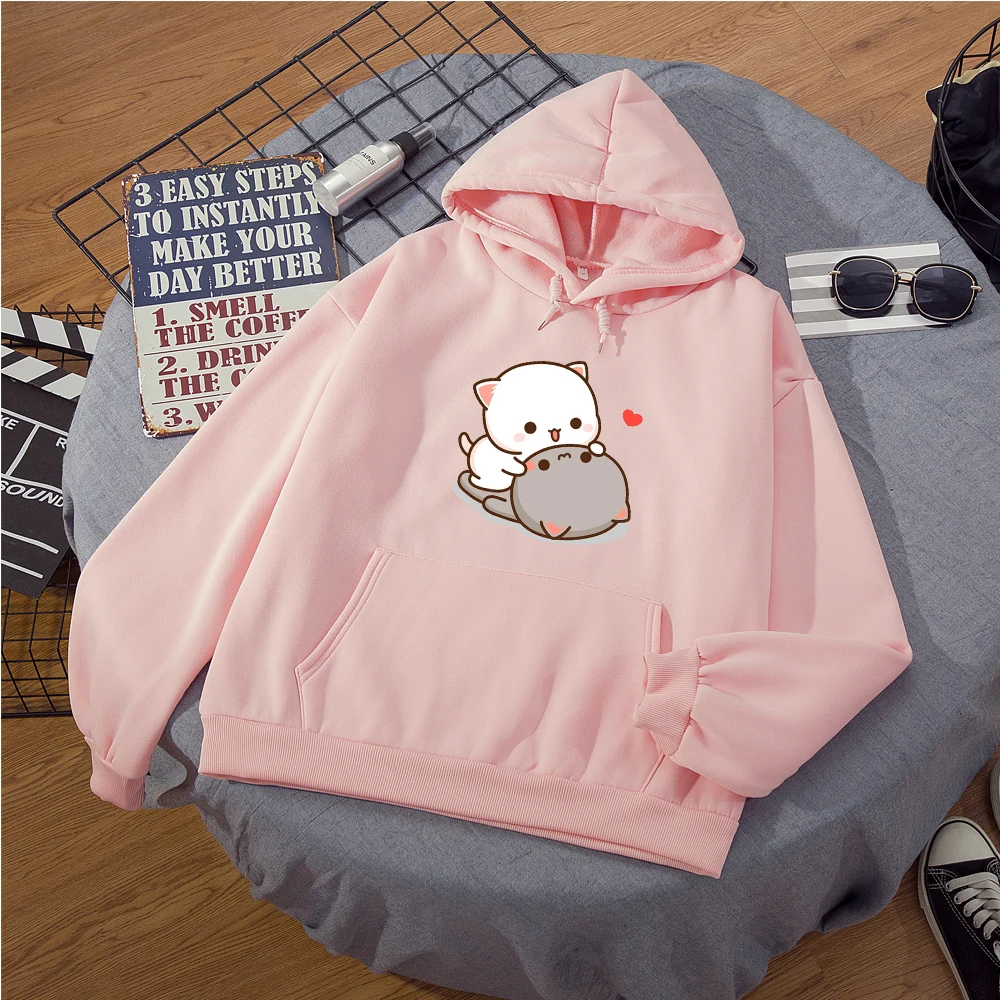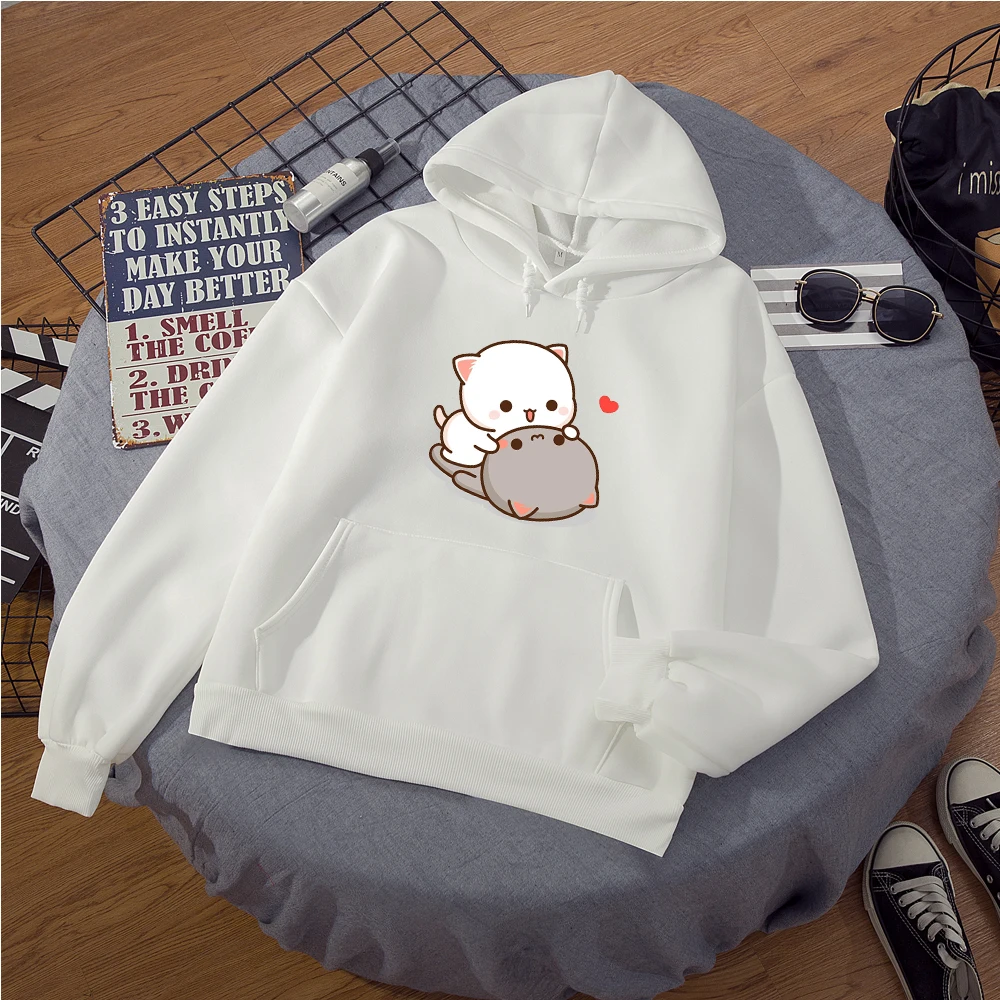 Женская Толстовка Harajuku, с мультяшным принтом в виде кота, теплая уличная одежда, модный Повседневный пуловер, толстовка с капюшоном