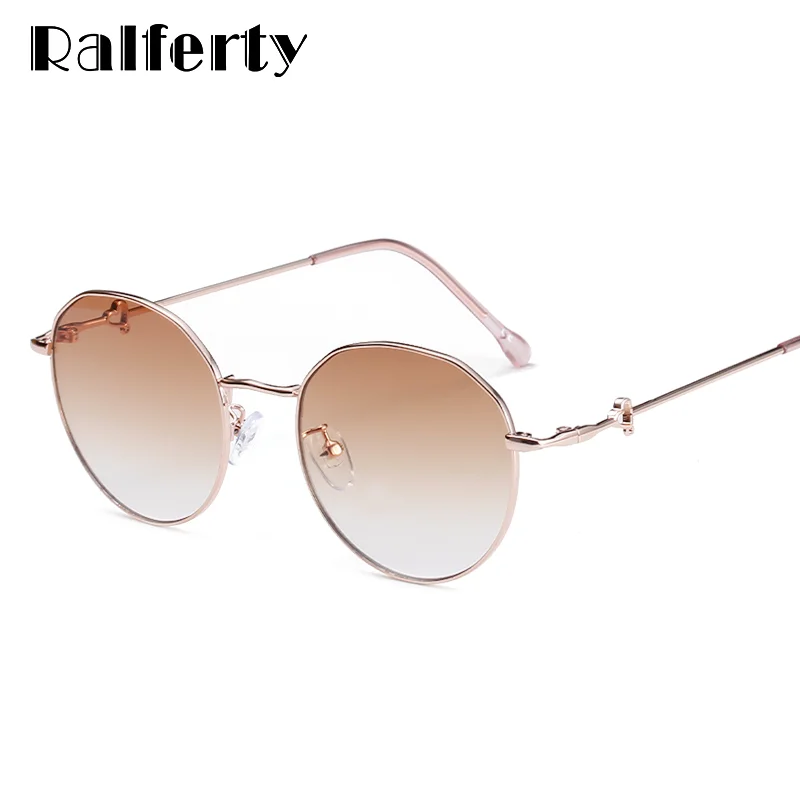Ralferty Круглые Солнцезащитные очки женские 2020 винтажные легкие солнцезащитные очки в металлической оправе UV400 градиентные очки с затемненными линзами W2029