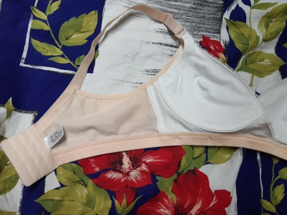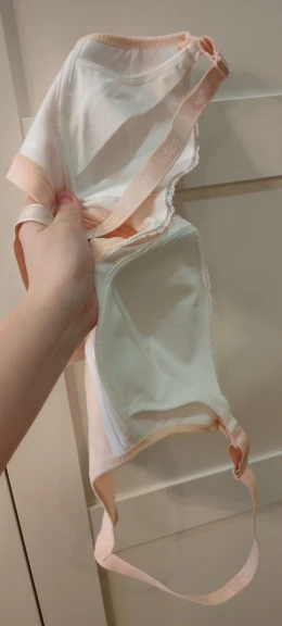Хорошее качество, хлопок, немного жмёт в обхвате, застегиваю на последнюю застежку, но я сейчас на 8 месяце, после родов объем станет меньше, чашки великоваты на пару размеров, но так и должно наверно быть, после родов когда нальются молоком будет в самый раз, до беременности носила размер 75С