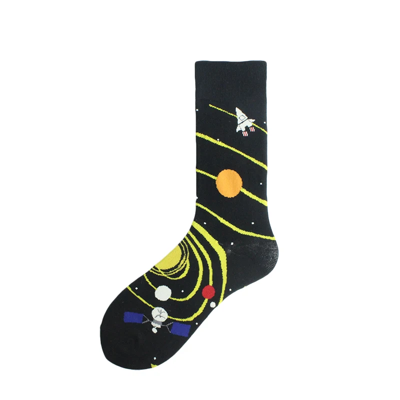 Носки мужские из чесаного хлопка, креативные Смешные, с планетами, ...