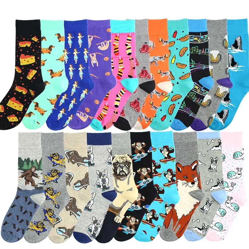 Веселые носки с изображением обезьяны и мопса, унисекс, с принтом пива, гамбургера, сыра, Harajuku, Креативные мужские носки, Calcetines Divertidos Crew Skarpetki