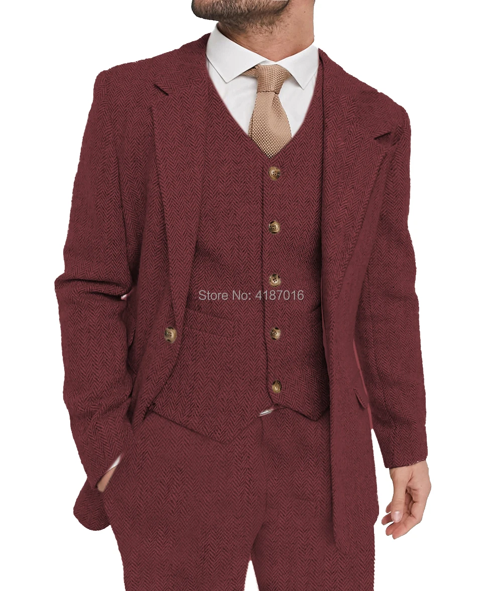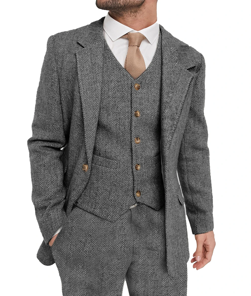 Костюм мужской из 3 предметов, приталенный пиджак + брюки + жилет, шерстяной твидовый свадебный смокинг для шафера, с отложным воротником, серого цвета
