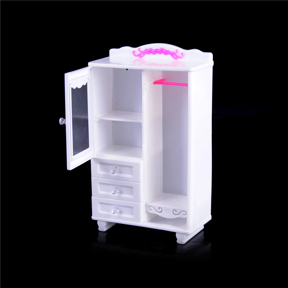 Шкаф и вешалка для кукольного домика, пластиковый белый шкаф для гостиной, аксессуары для игрушечного кукольного домика, мебель