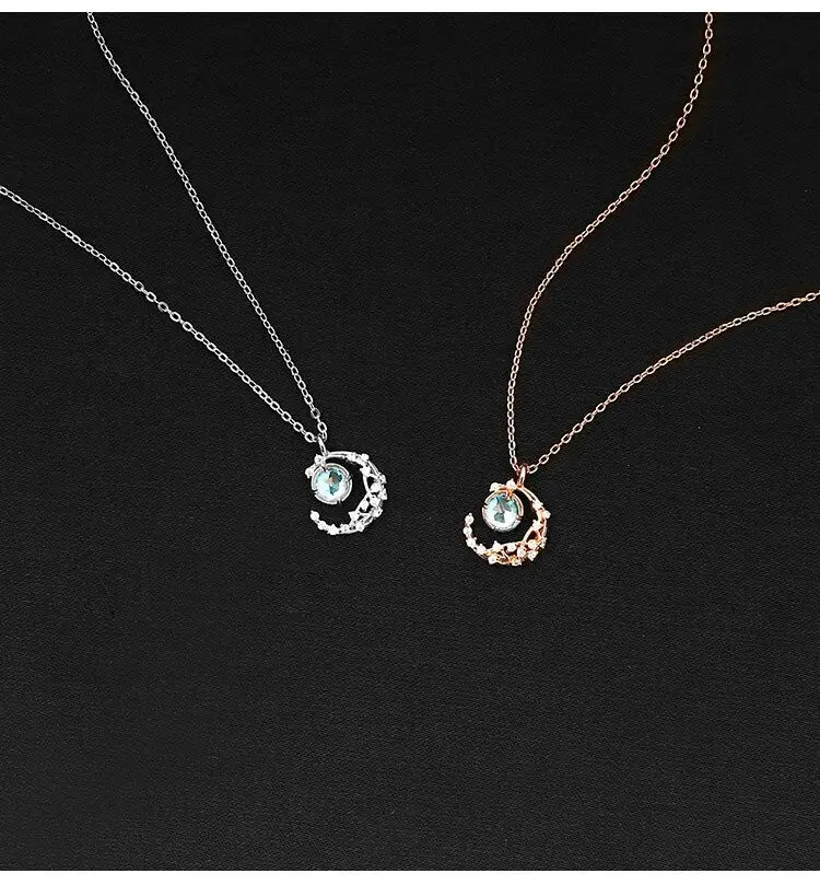 Ожерелье с кулоном в виде полумесяца, из серебра 925 пробы