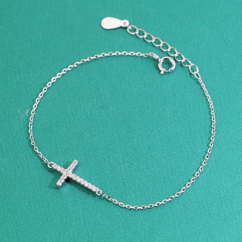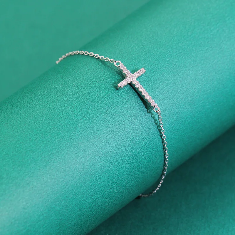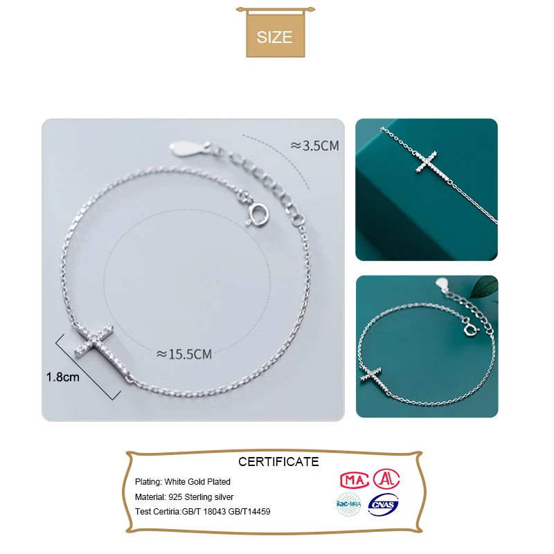 Trustdave Настоящее серебро 925 пробы Модный милый простой крест сверкающий CZ браслет для женщин Свадебная вечеринка Изящные Ювелирные изделия DA1390