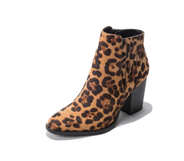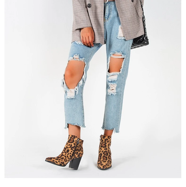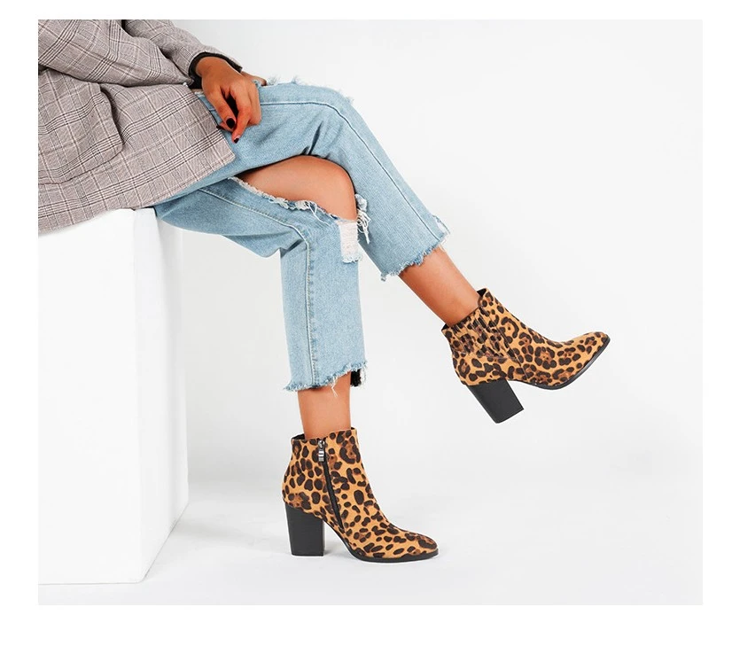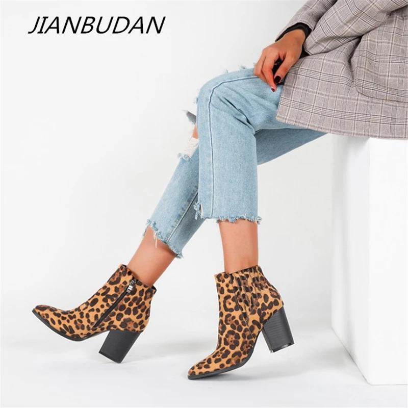 Новые Сексуальные женские леопардовые ботинки JIANBUDAN из флока с острым носком на высоком каблуке ботильоны с боковой молнией осенние женские ботинки 36-43