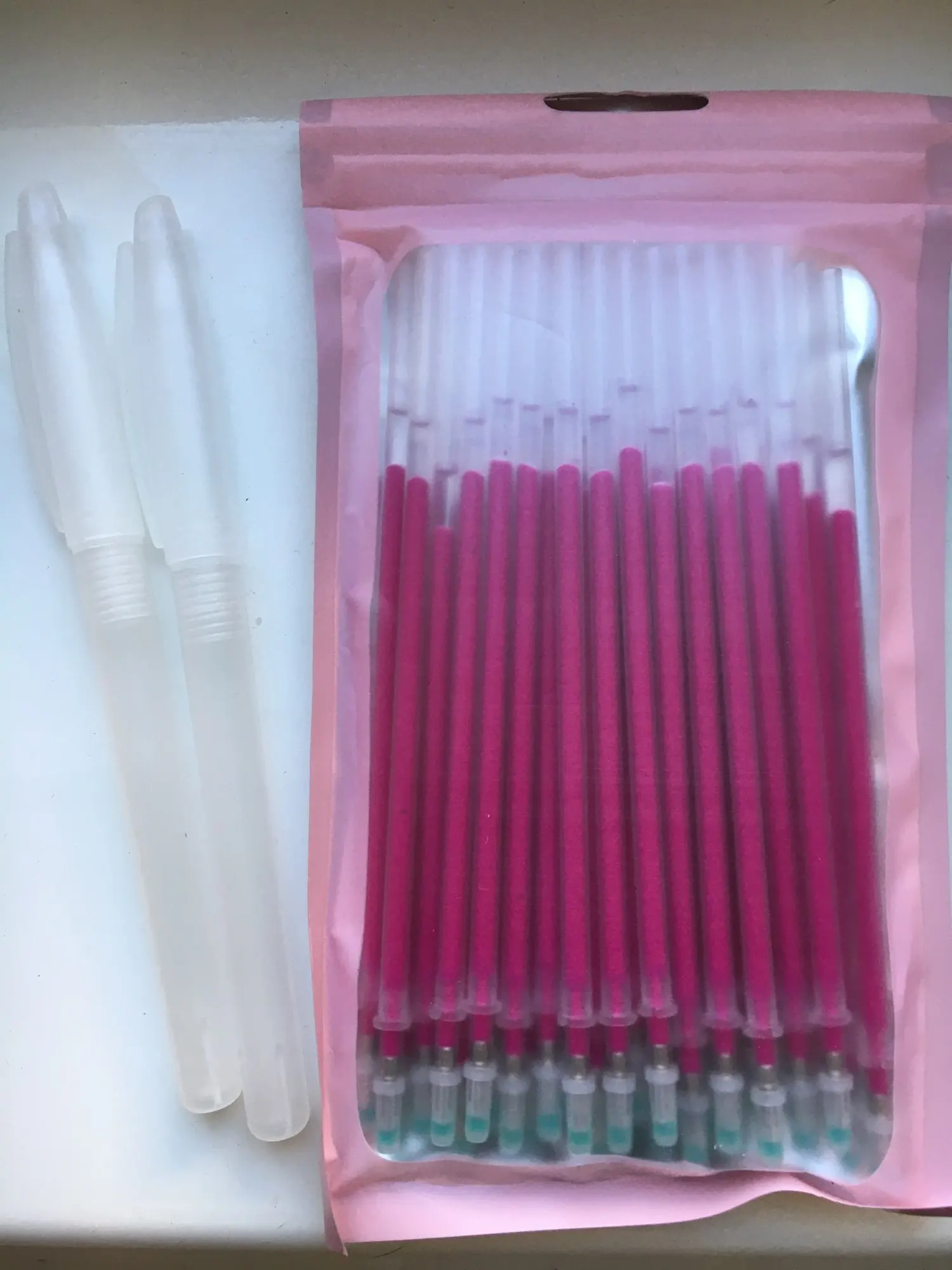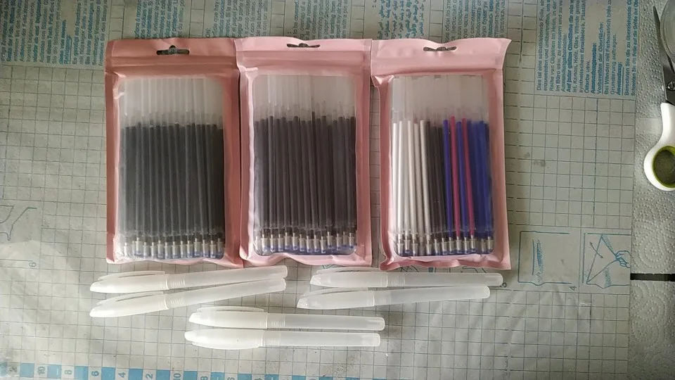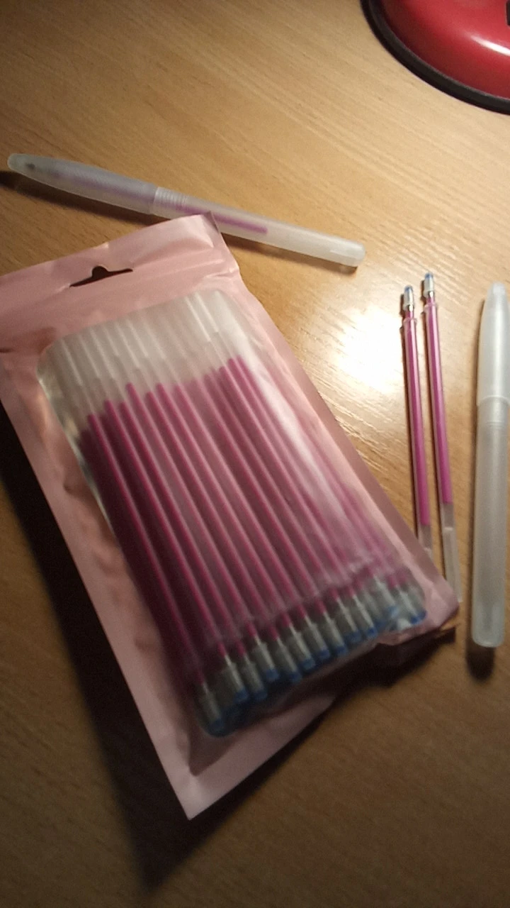 хорошие ручки. стираются от горячего утюга. покупаю второй раз. в наборе 40 стержней и 2 ручки. спасибо продавцу. рекомендую.Посылка отслеживалась. смогла перенаправить с почтомат.