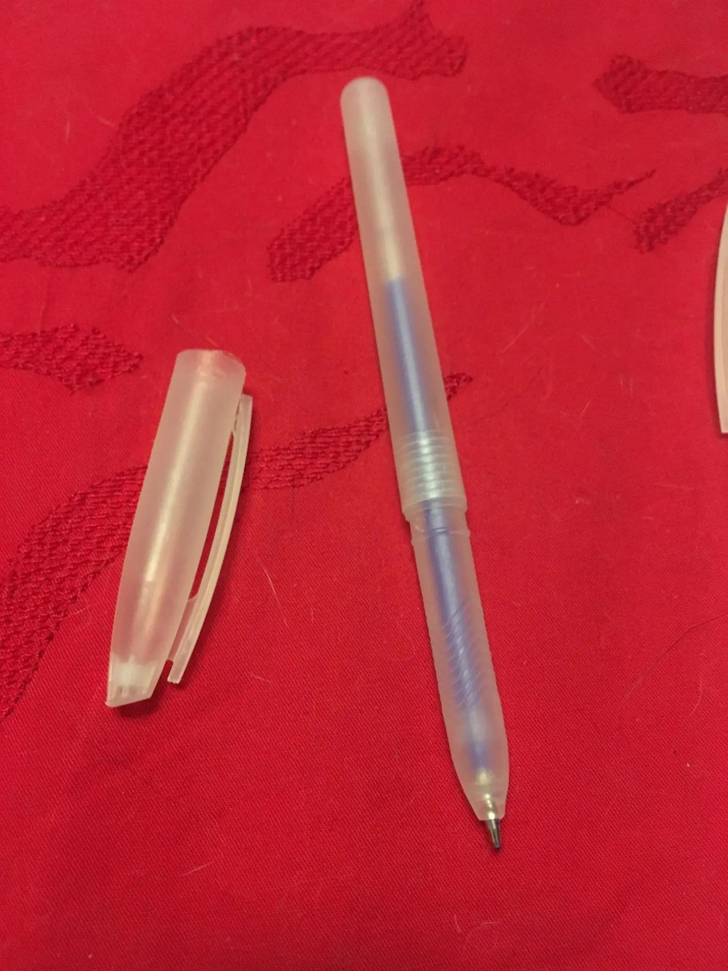 Ну, я очень хотел получить это. Они очень хорошие, но есть некоторые небольшие вещи, которые мне не нравятся, например. Это все еще выходит из чернил, все еще забитые, поэтому он выглядит синим, белая крышка была с ним такой же, это то, что вы больше не видите ничего, что я Очень разочарован тем, что я ожидаю, что белый будет отмечаться так же, как и не полупрозрачный, я хотел, чтобы он отмечал черную или темную ткань, и вы не можете видеть, что еще что-то хорошее