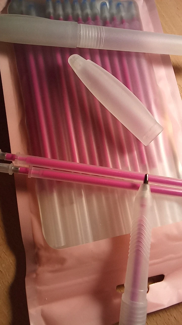Ручки отличные. Доставка быстрая. Заказываю не в первый раз. Но будьте внимательны: при минусовой температуре ручка проявляется! Случайно обнаружила, когда пересылала изделия заказчице зимой в минусовую температуру. После стирки следы от ручки даже в минусовую температуру не проявляются. Это касается не только ручек этого продавца, а всех подобных ручек, которые исчезают от утюга.