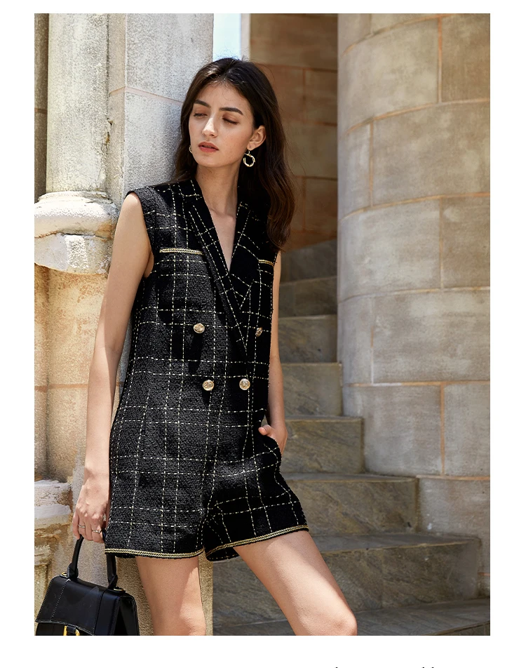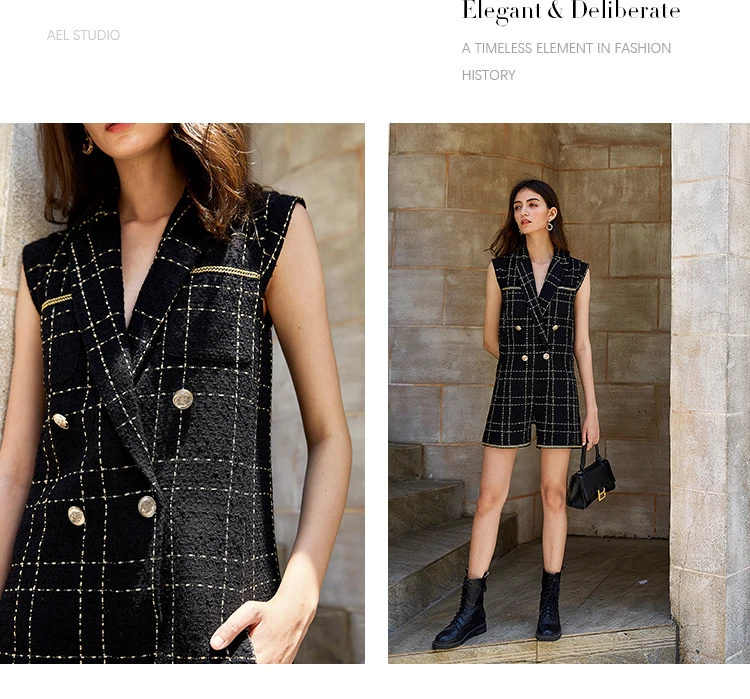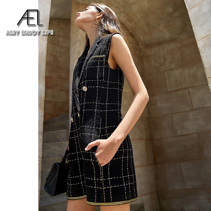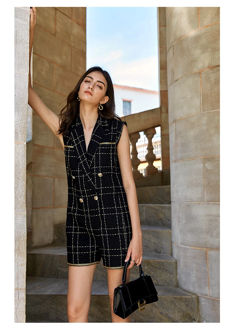 Комбинезон AEL женский твидовый, элегантный офисный комбинезон с золотыми нитями, одежда для лета, 2020