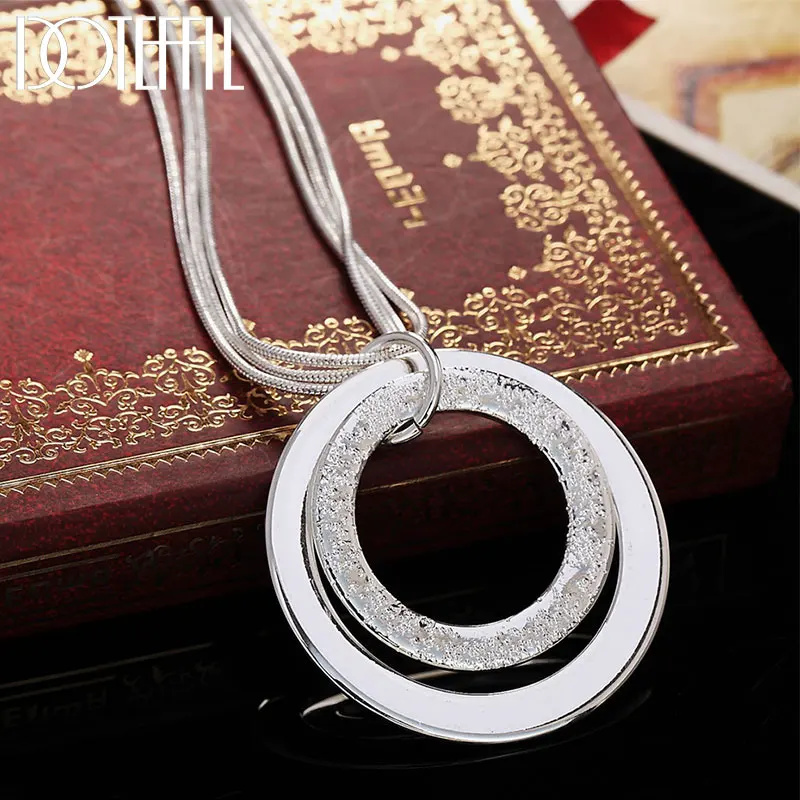 Цепочка-змейка DOTEFFIL, 18-дюймовая, из стерлингового серебра 925 пробы, с О-образным матовым кулоном, для женщин, модное Ювелирное Украшение для свадебной вечеринки