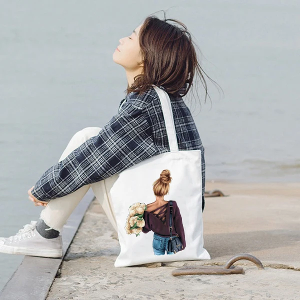 Холщовая Сумка-тоут для покупок с принтом для девушек, подарок для ...