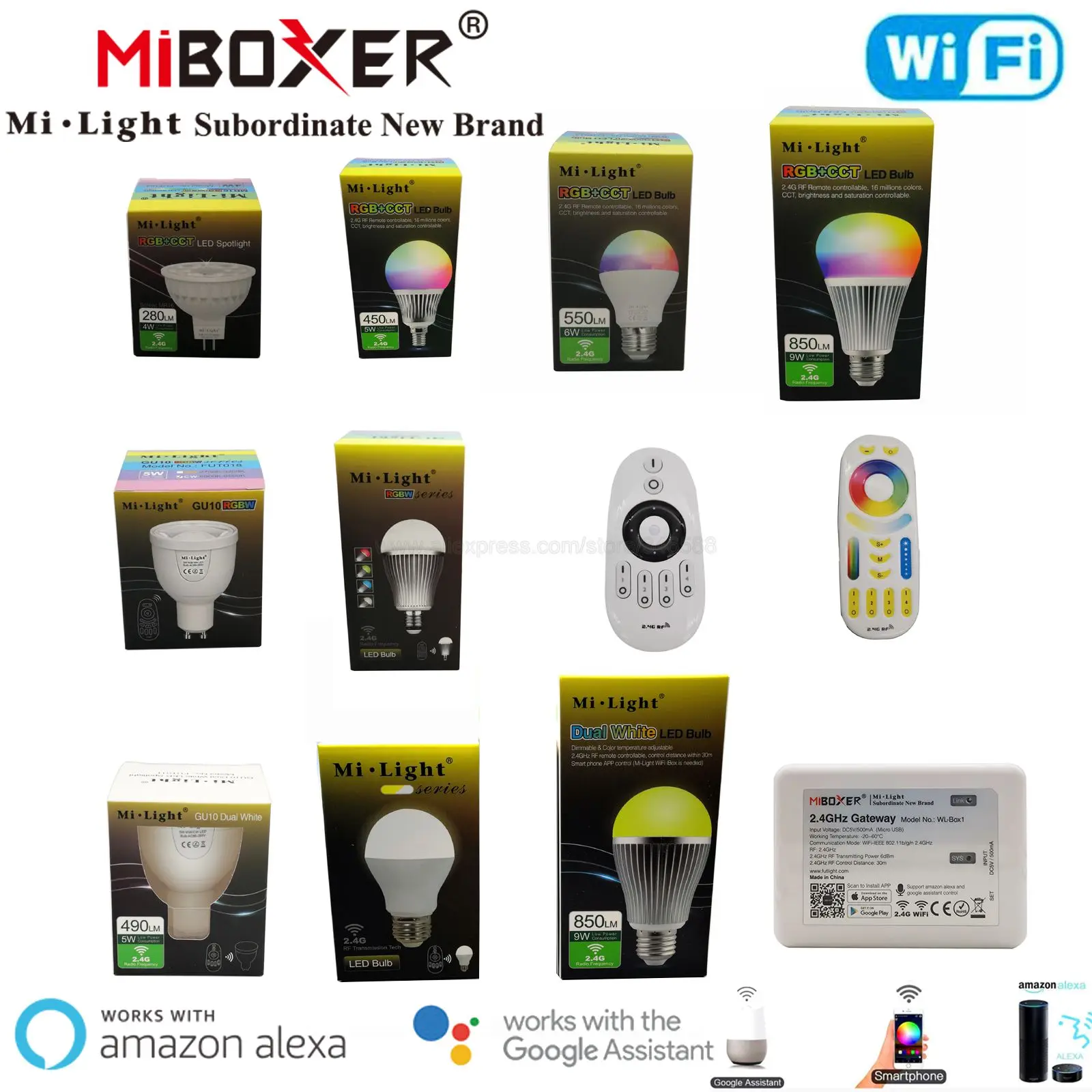 Умсветодиодный Светодиодная лампа MiBoxer 2,4G, MR16, GU10, E14, E27, 4 Вт, 5 Вт, 6 Вт, 9 Вт, 12 Вт, CCT RGB + лампа CCT, беспроводной пульт дистанционного управления, Wi-Fi, голосовое управление через приложение