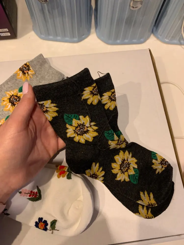 Носки женские Короткие хлопковые в стиле Харадзюку, с рисунком подсолнуха