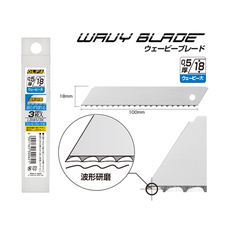 3 шт Olfa LWB-3B 18 мм изоляционные лезвия, большие Волнистые лезвия, 100 мм X 18 мм X 0,5 мм