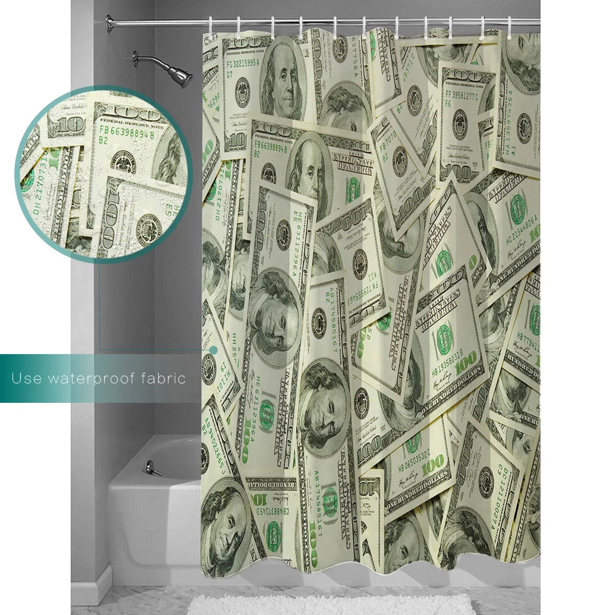 Занавеска для душа из полиэстера, с принтом долларов, с крючками