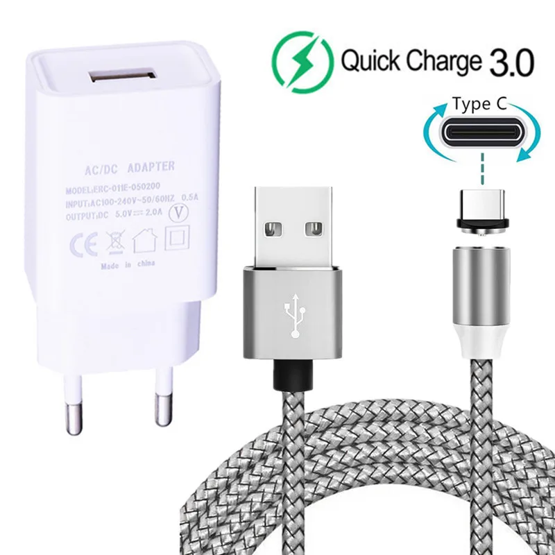 Магнитный зарядный кабель с разъемом USB Type-C для Huawei P40, Honor view 20, 30 Pro, Redmi 9, Note 8, 9s, 5 В, 2 А, настенное зарядное устройство для Samsung A30s