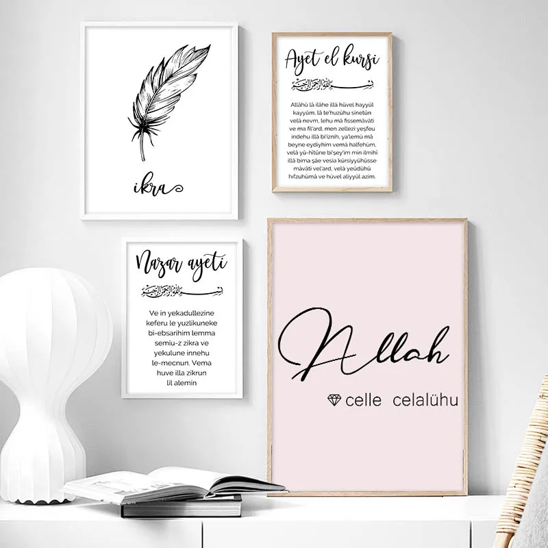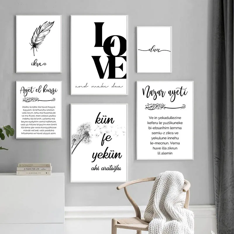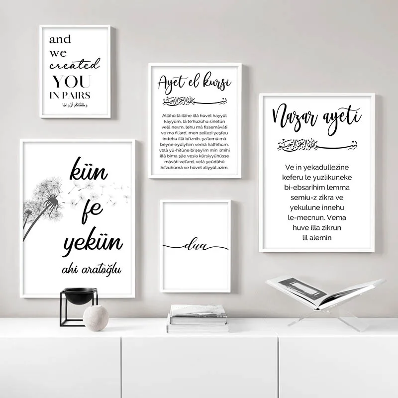 Черно-белая исламская цитата, холст, картина, религия, простота, настенное искусство, декор, плакат и печать, арабская каллиграфия, мусульманская картина