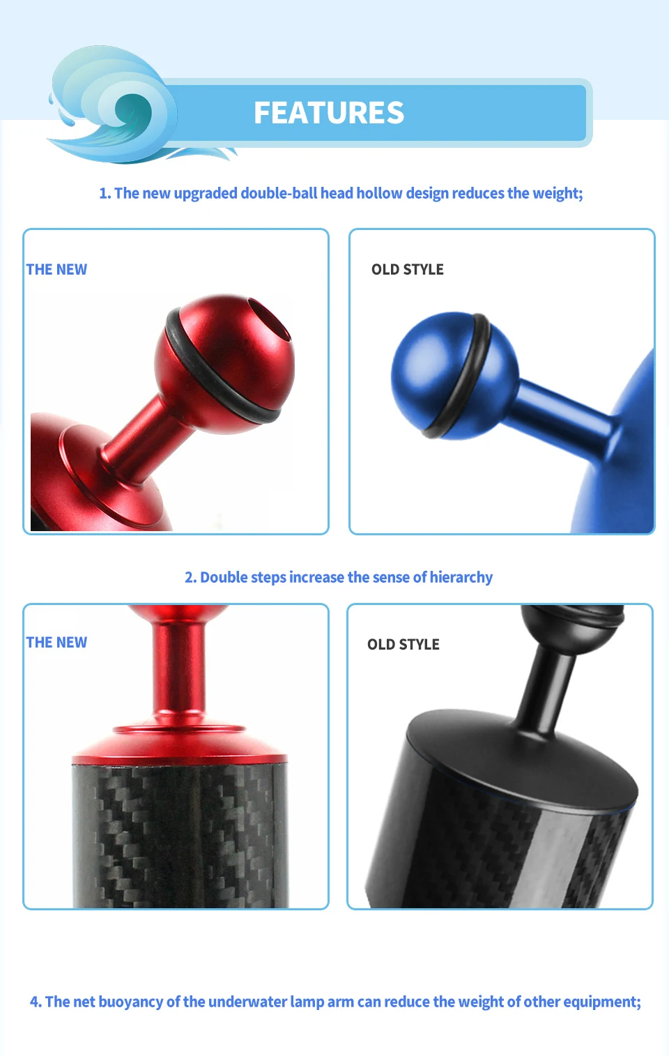 Легкая, очень прочная конструкция с двумя шариками.Идеально подходит для съемки фотографий на воде или погружения под воду.